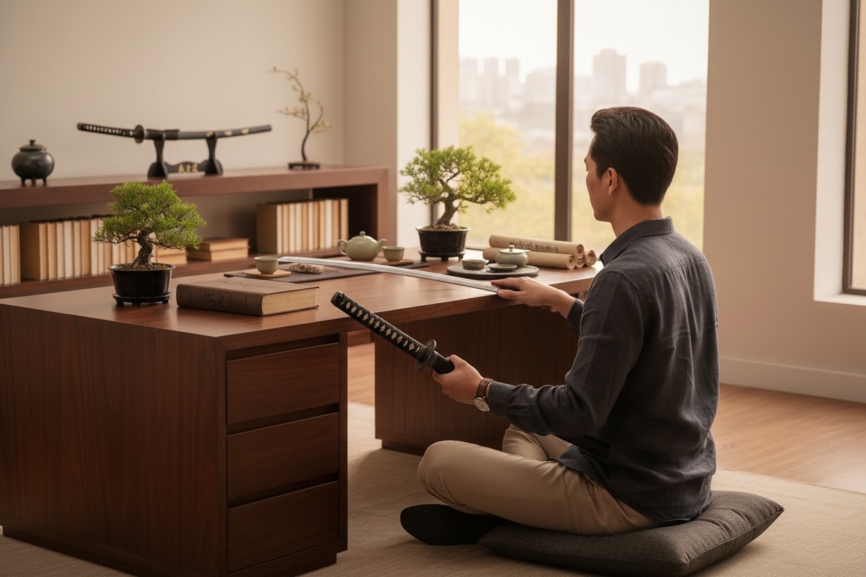 MODEL OZDOBNY MIECZ WYKONANY WEDŁUG TRADYCJI I ZASAD JAPOŃSKICH.
