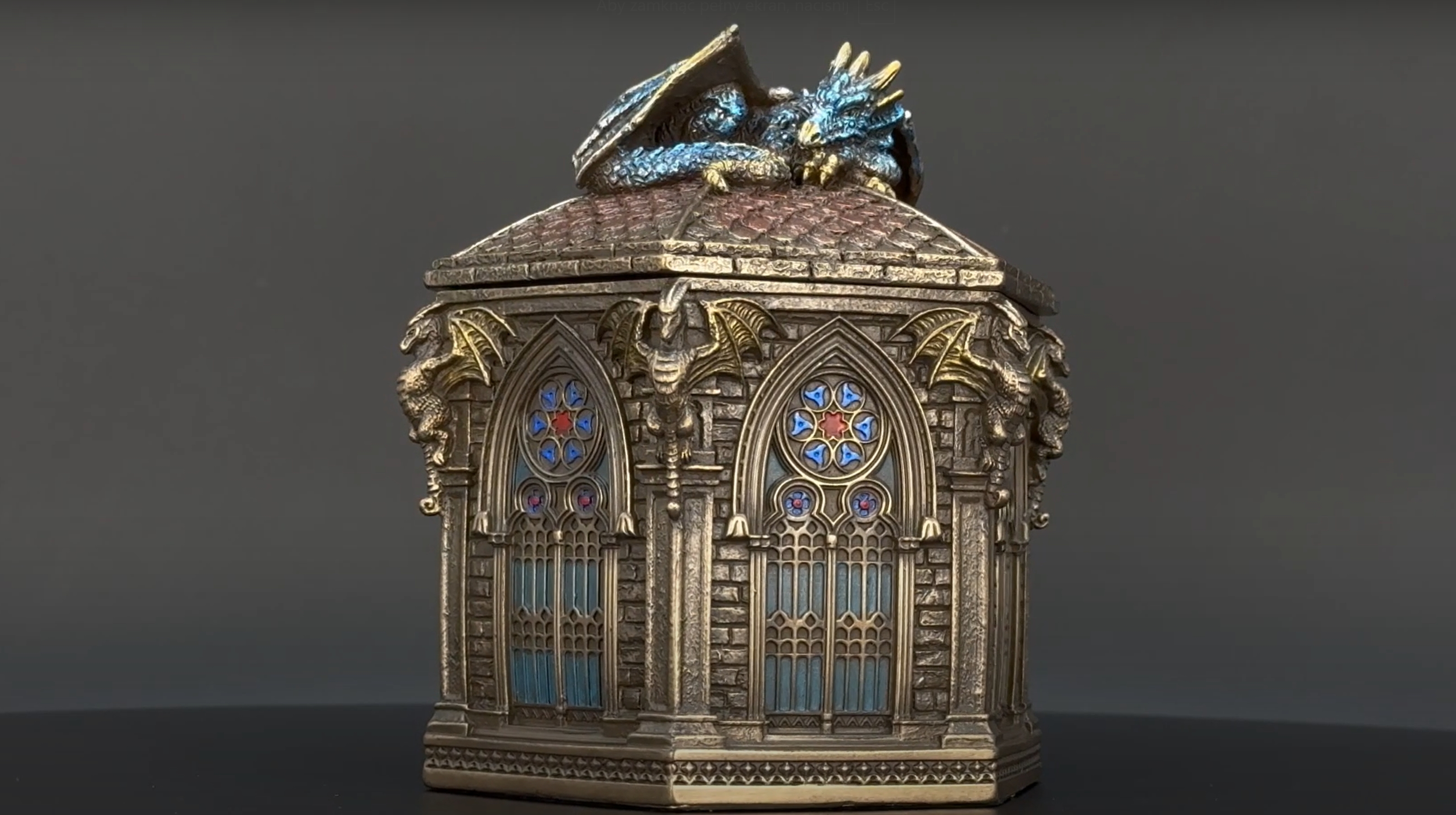 ⚡Szkatułka Smok na katedrze, to rzeźba, która pięknymi detalami zachwyci każda osobę. To niezwykle realistyczna figura.